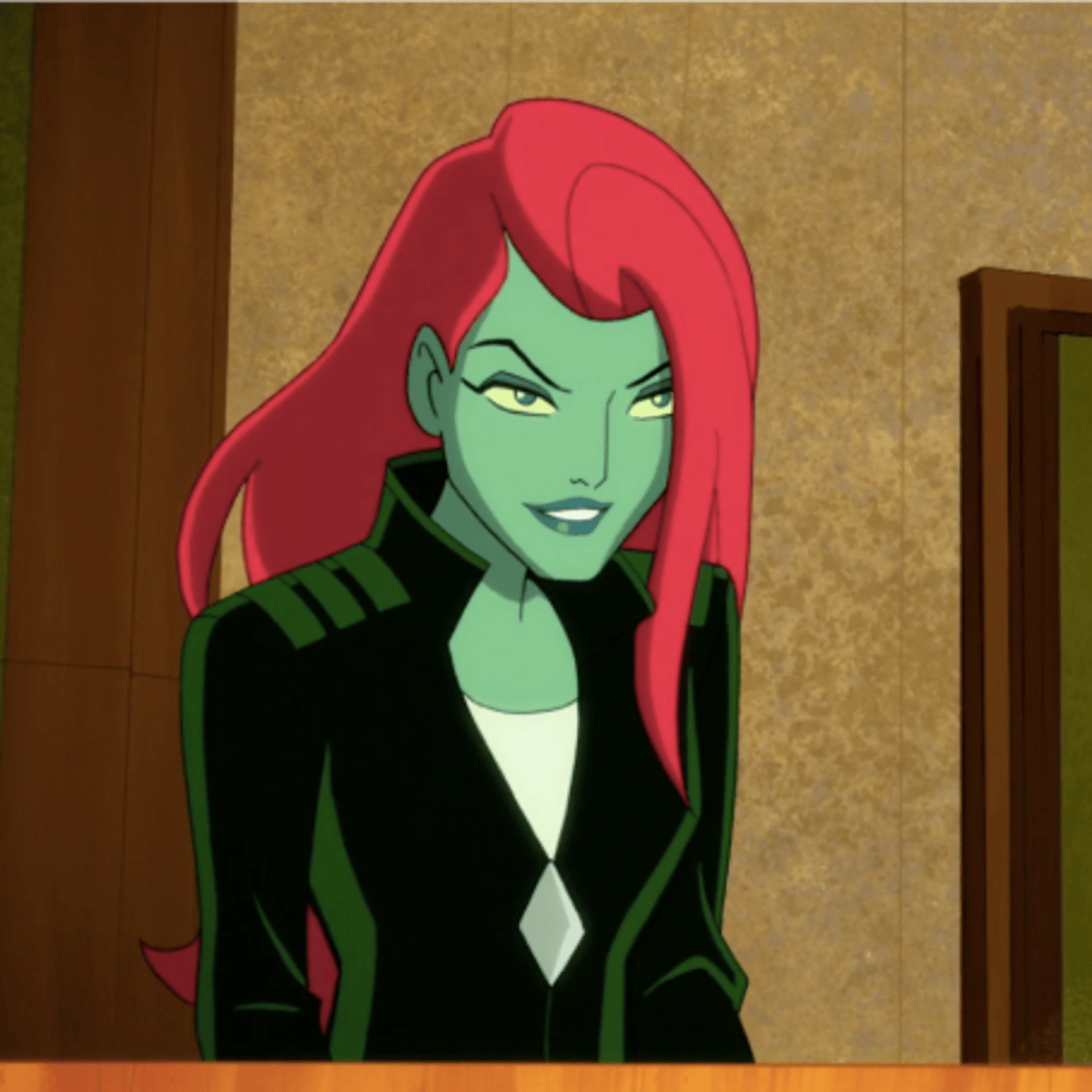 Poison ivy (aka Pamela Isley) is known as a genius and always helps her friends (version from the Harley Quinn series)