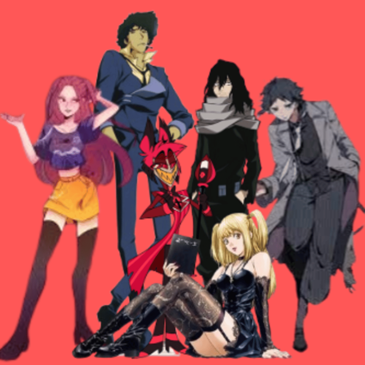 Main character: You and Akutagawa (Beast) The Bada** girl: Mira (K-Pop Demon Hunters) The cute, but merciful: Misa Amane (Death Note) The skillful assassin: Spike Spiegel (Cowboy Bebop) The mentor: Shota Aizawa (MHA) Comic relief: Alastor (Hazbin Hotel) Let me know if I need to fix anything!