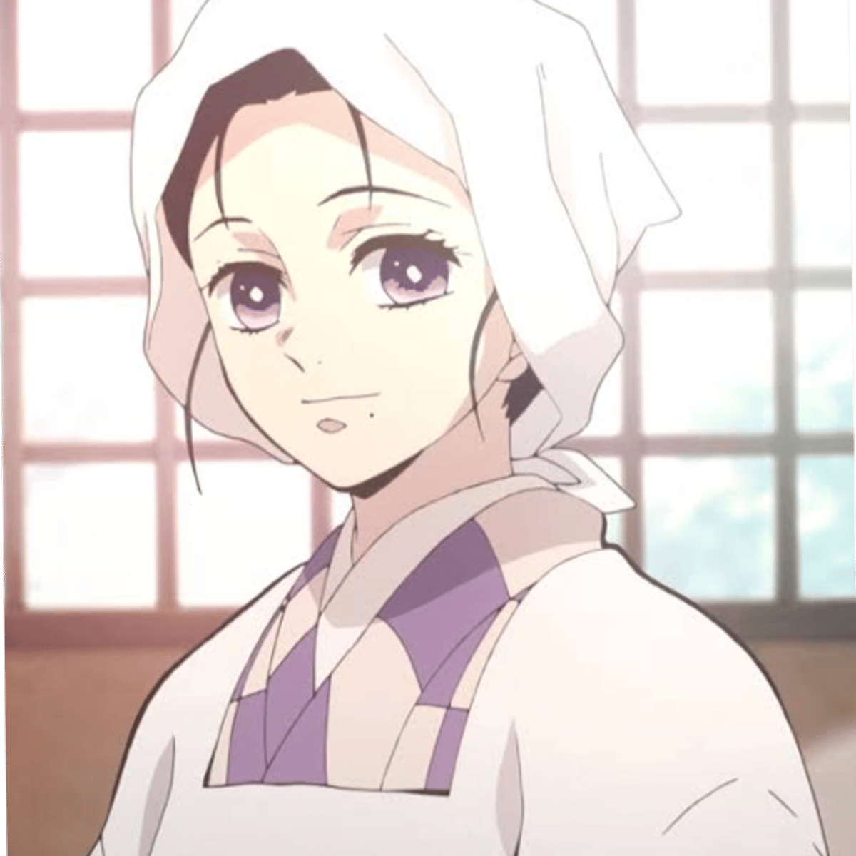Kie was a woman with a noticeably light complexion, kind, dark purple eyes that appear a lighter color around the rims of their irises, and a small beauty mark located on the left of her face below her lower lip. She had black hair, worn tied back in a messy bun . Very ample body
