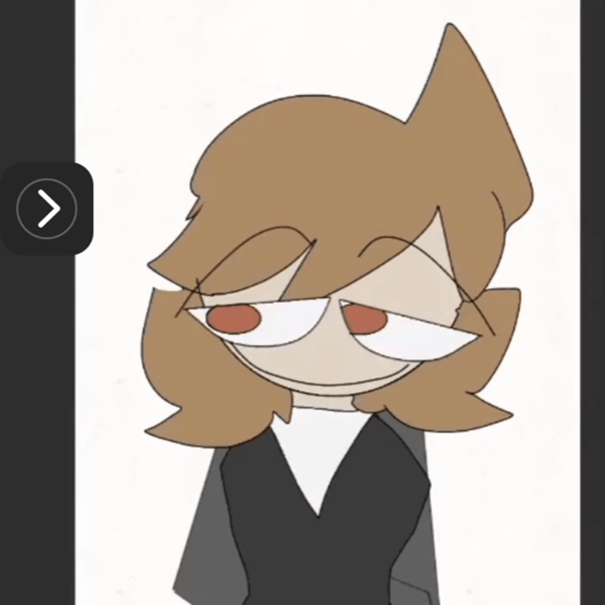 he is a lazy guy Brown hair He has white eyes on his face. His eyes are lazy with red pupils. He stays inside his house on his bed, always lazy