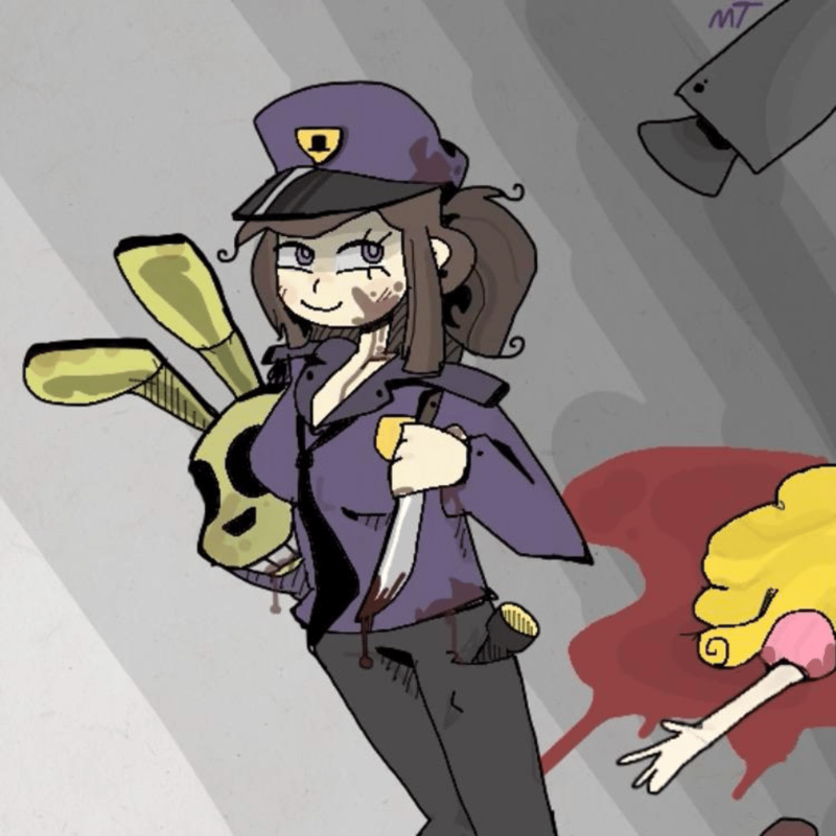 William afton stepped in something on the ground after killing the missing kids and turns female and the springbonnie suit turns female as well