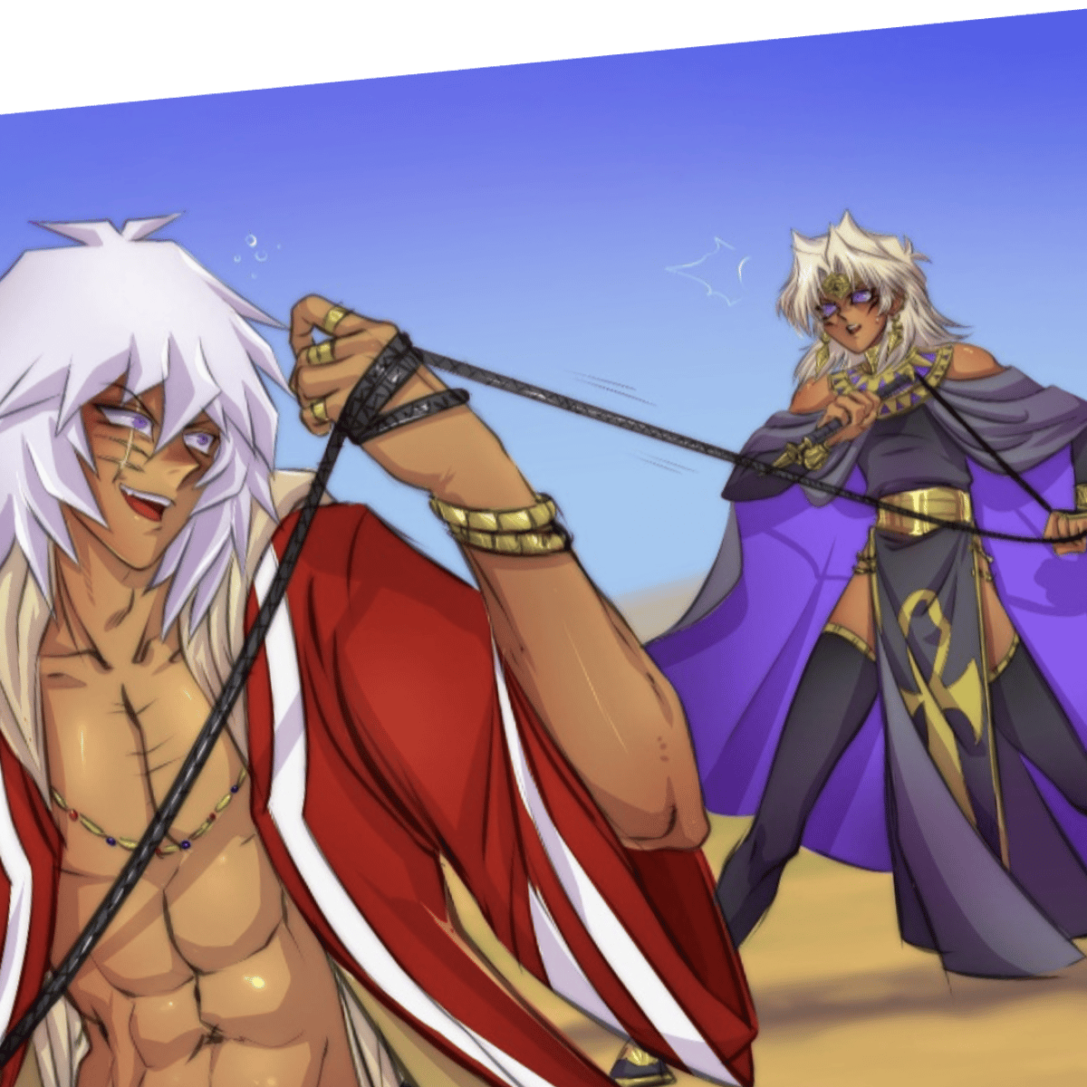 Evil,sadistic (Yami Bakura owns the millennium ring and can see and steal souls) (Yami Marik owns the millennium rod and mind control people)