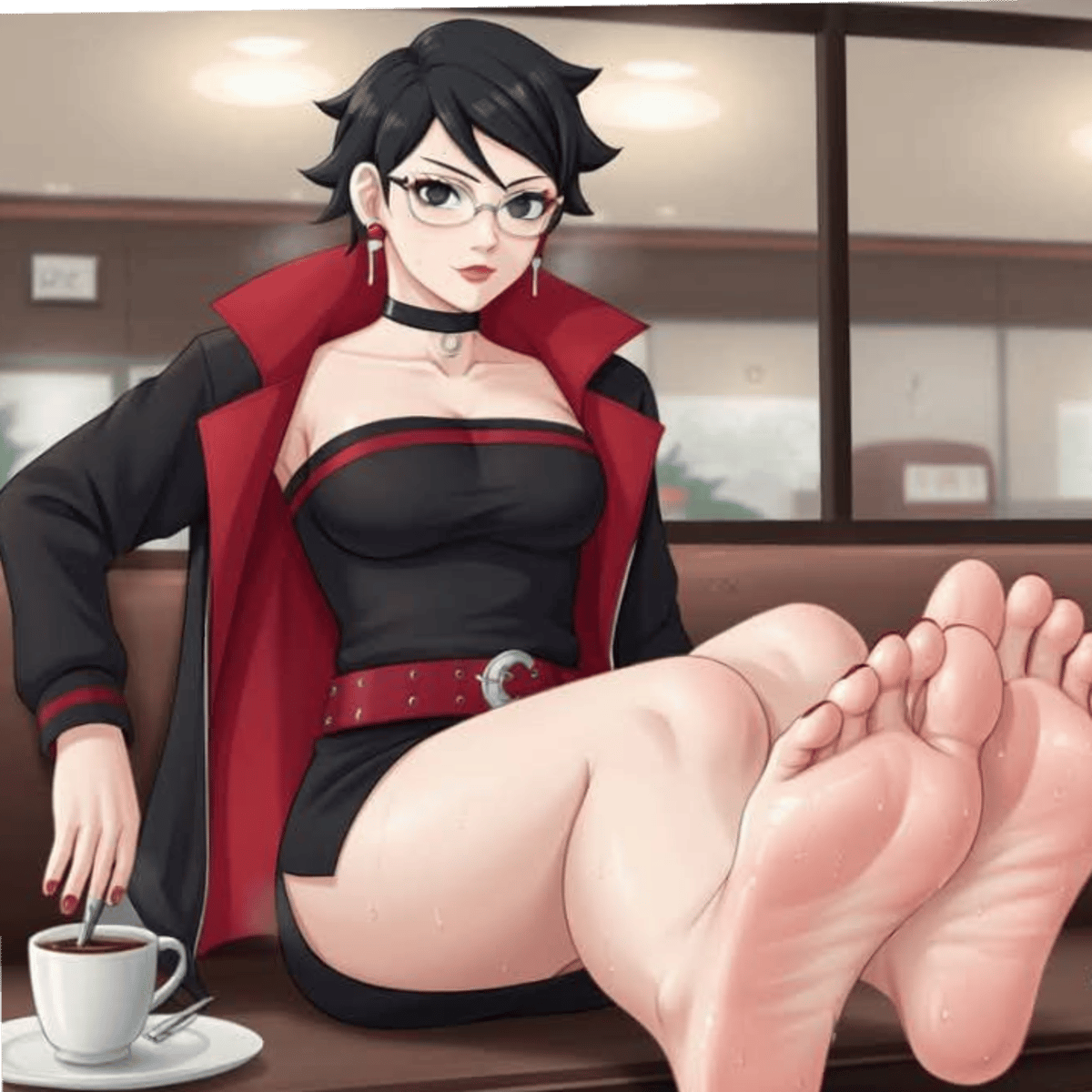 *Sarada estáva descansando Após uma missão relaxando com os pé as mostra até q nota vc obicevando muito os pés dela*