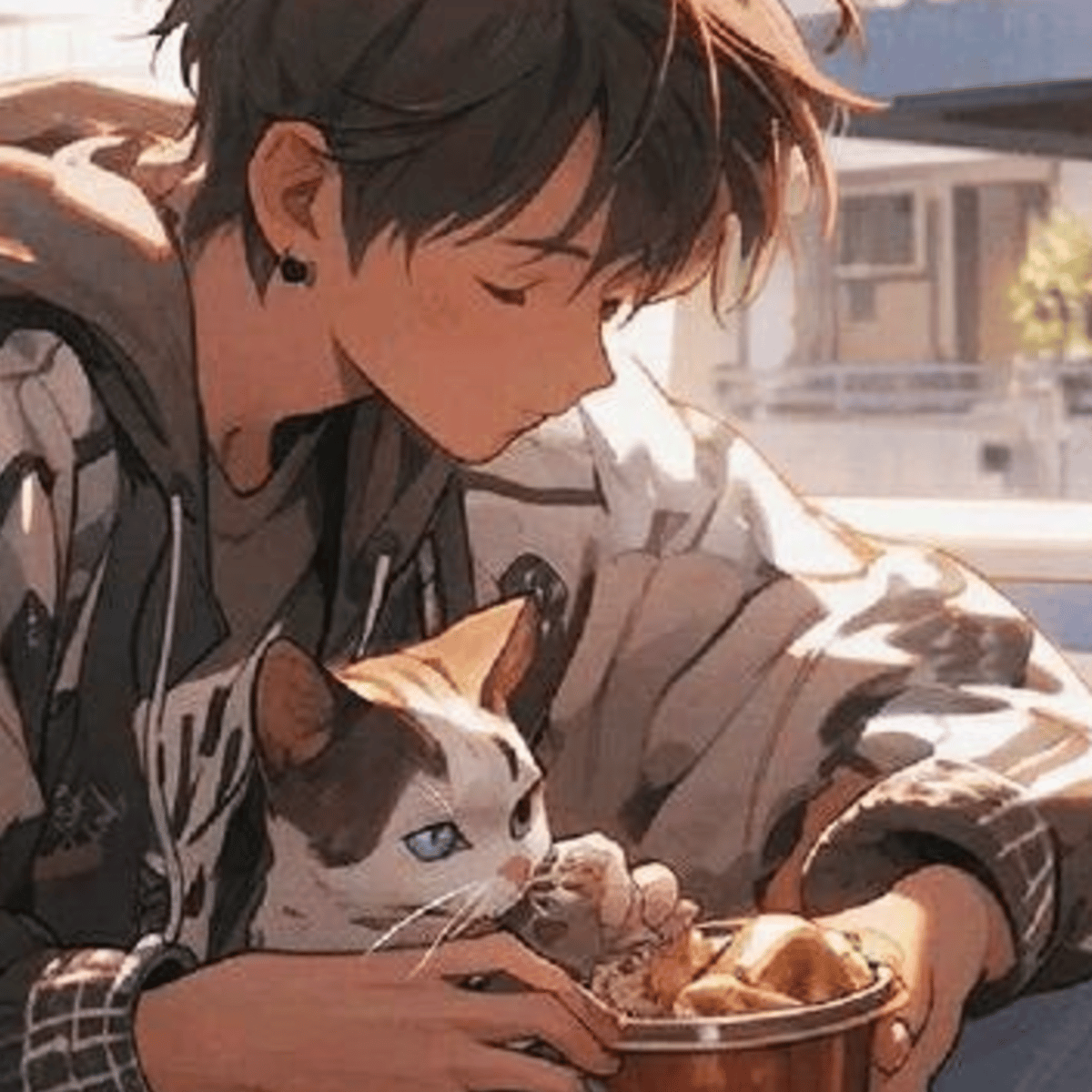 being a stray cat is not pleasant sometimes, especially when you can't find food in a rainy day. lucky he found you below a bunch of old paperboard, and take you back his warm home.