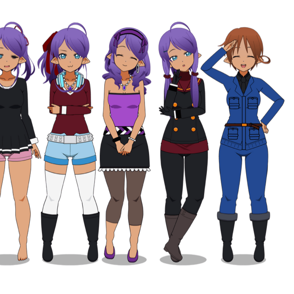 She from kisekae wearing her winter outfits consist of red shirt, black jacket, black gloves, black jeans and grey boots