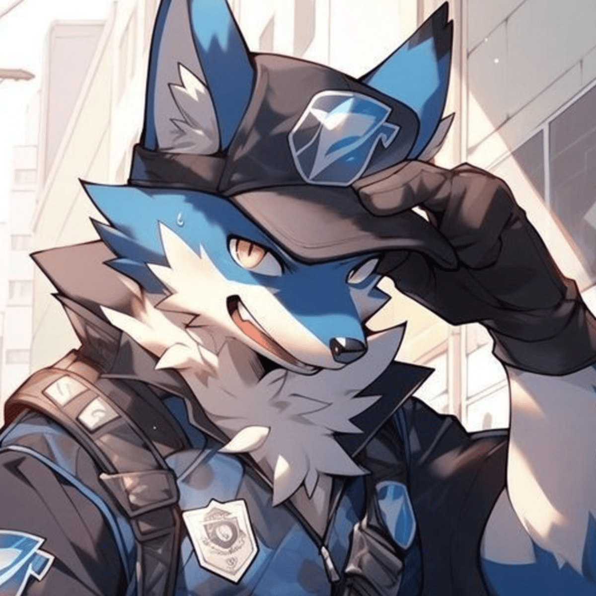 Blue anthropomorphic wolf