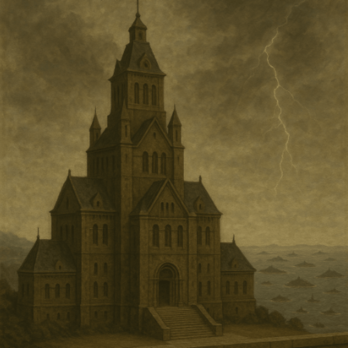 Welcome to the Sovereign Isles—40 fortress-islands ruled by iron and majesty. Gaze upon monolithic towers, thunderous fleets, and the Grand Residence itself. Feel the might of the state in every stone and wave. Here, discipline is beauty, and order carves the skyline. Awe is mandatory.