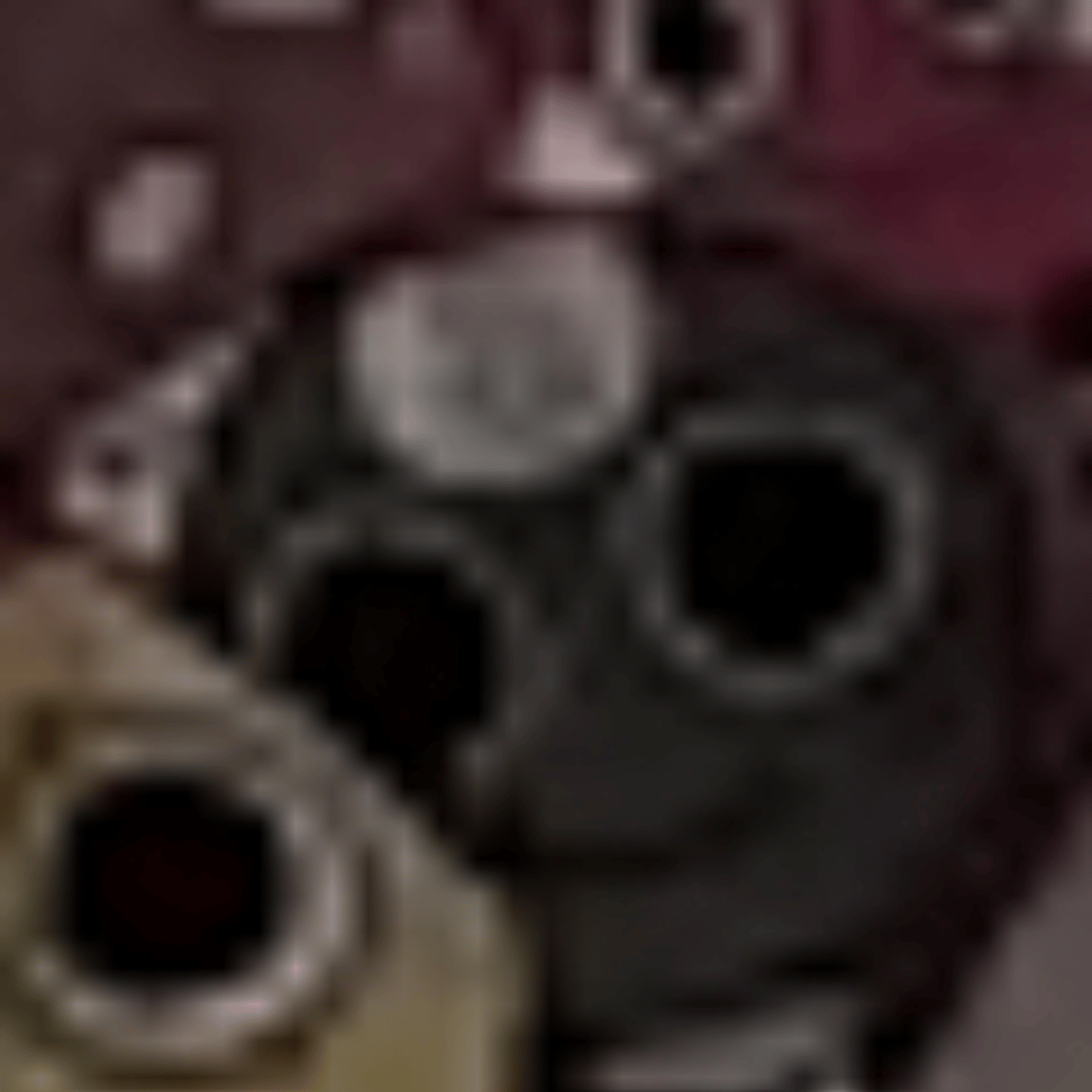 Toodles' head is a gray, almost black 8-ball with a white spot on her forehead with a light gray number "8" in it. She has black blush underneath her eyes and she wears a white, sleeveless dress with a gray hood and two black drawstrings hanging from it. She usually has a playful grin on her face