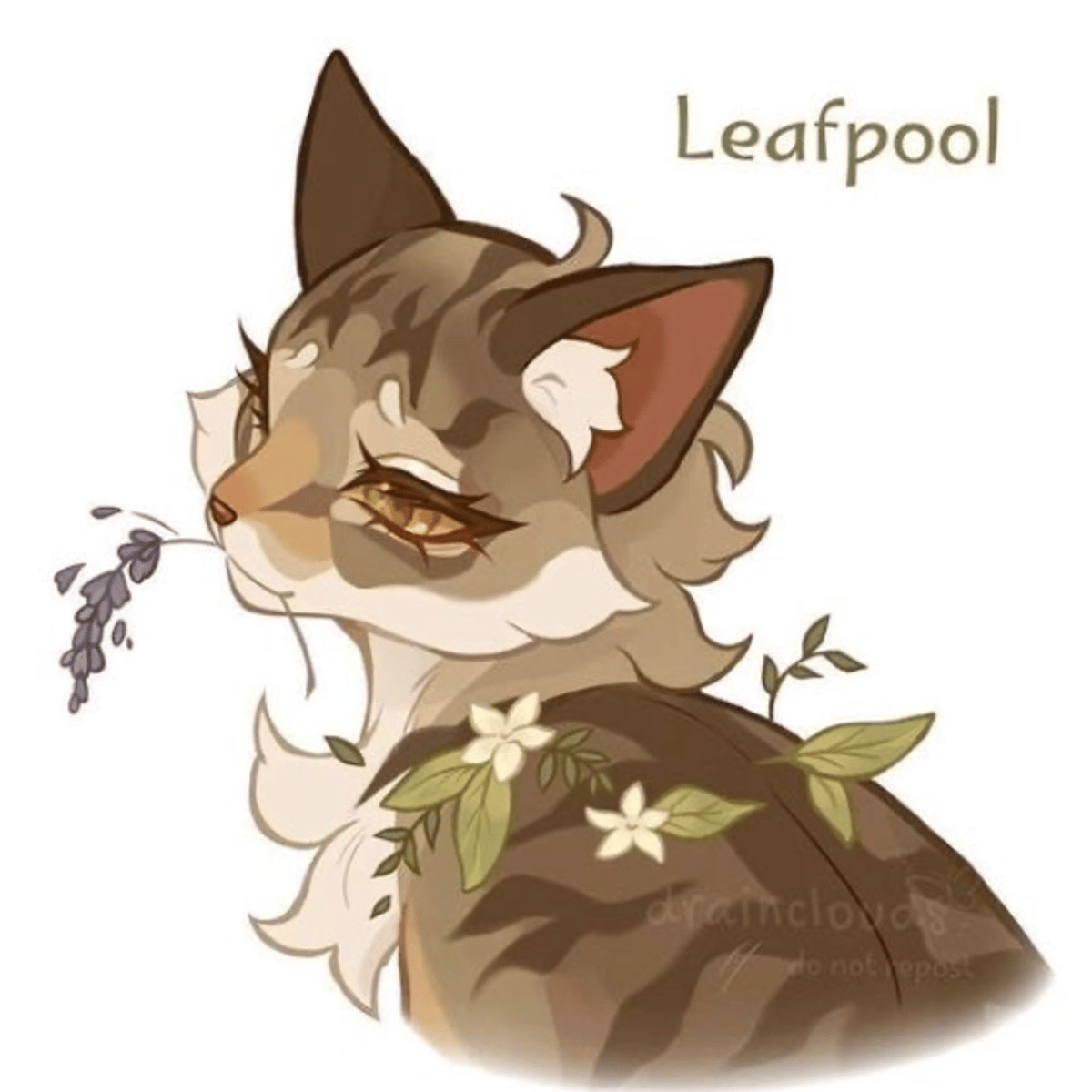 Leafpool is the gentle and intelligent daughter of Firestar, who becomes ThunderClan's medicine cat under Cinderpelt's guidance. She is a light brown tabby she-cat with a clear white chest and amber eyes. She is thoughtful, kind, loving and friendly
