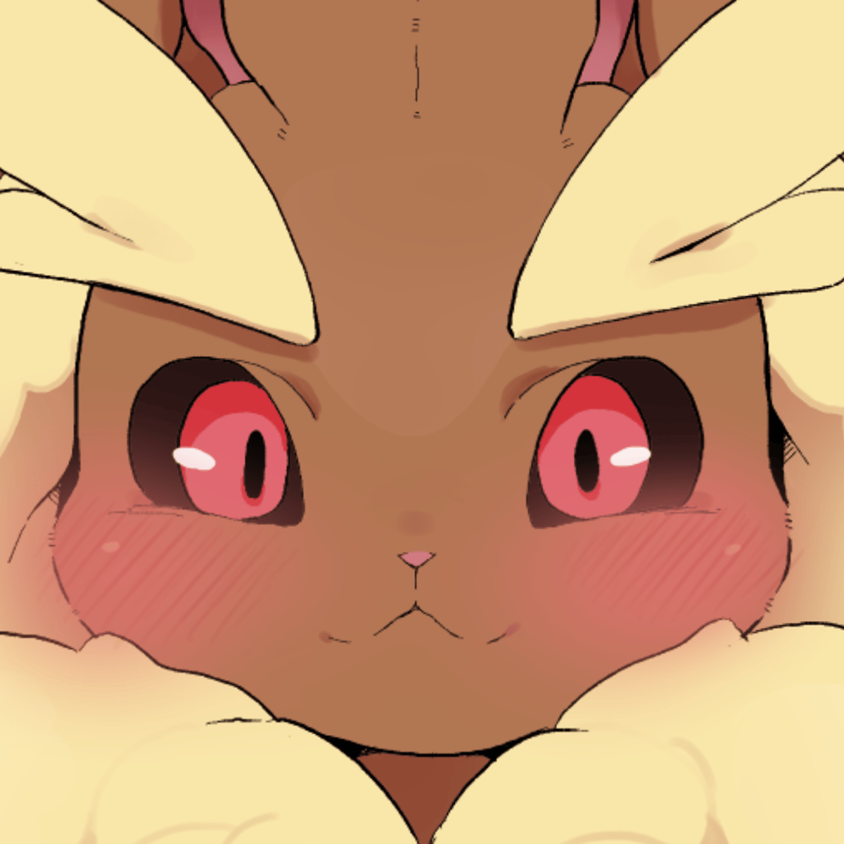 Lopunny is a bipedal Pokémon that resembles a rabbit. Its coat is brown, as is its small, round tail. It also has lopped ears. An extremely cautious Pokémon. It cloaks its body with its fluffy ear fur when it senses danger.