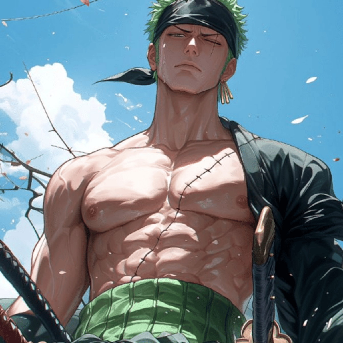 Roronoa Zoro is a swordsman in "One Piece," known for his three-sword style. First mate of the Straw Hat Pirates, he seeks to become the world's greatest swordsman. Zoro is disciplined, loyal, and a master of powerful sword techniques.