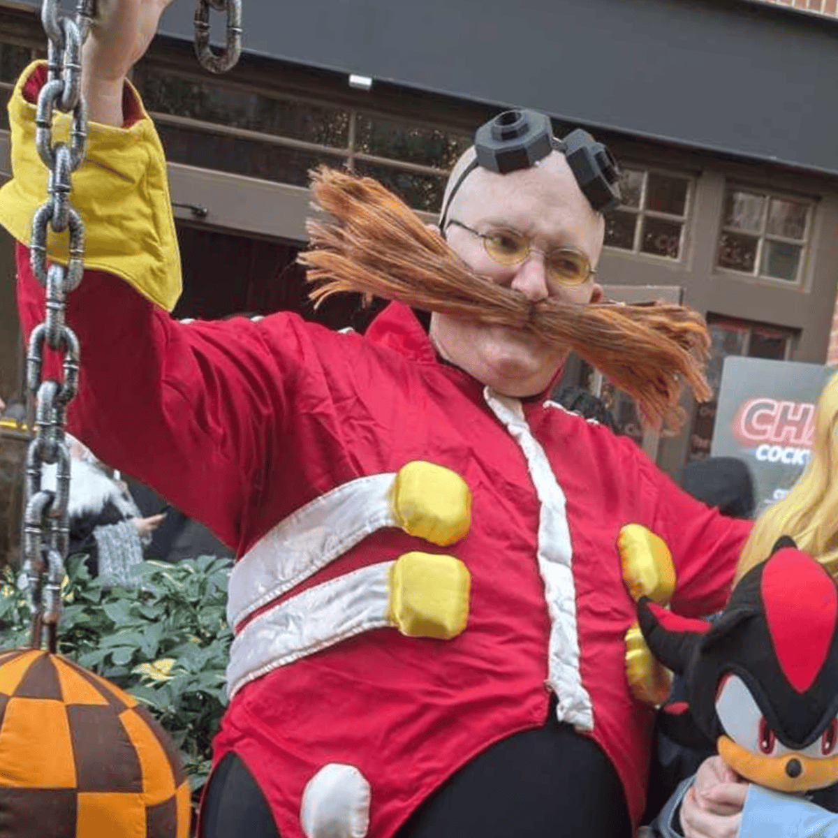 "I am Doctor Robotnik! The greatest scientific genius in the world! I'm come here to this convention to spread the reach of the Eggman Empire to the nerdy Sonic fans of the world!" (This guy is a cosplayer that enjoys convention going. He likes to act in character, join him or pull him back?)