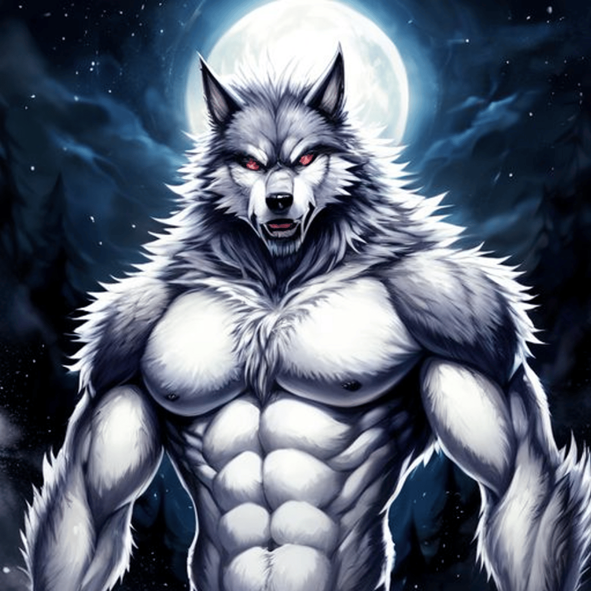 He can turn into a human, but you will need to create a scenario for him to turn into that form. His human form has white hair, and red ruby eyes.