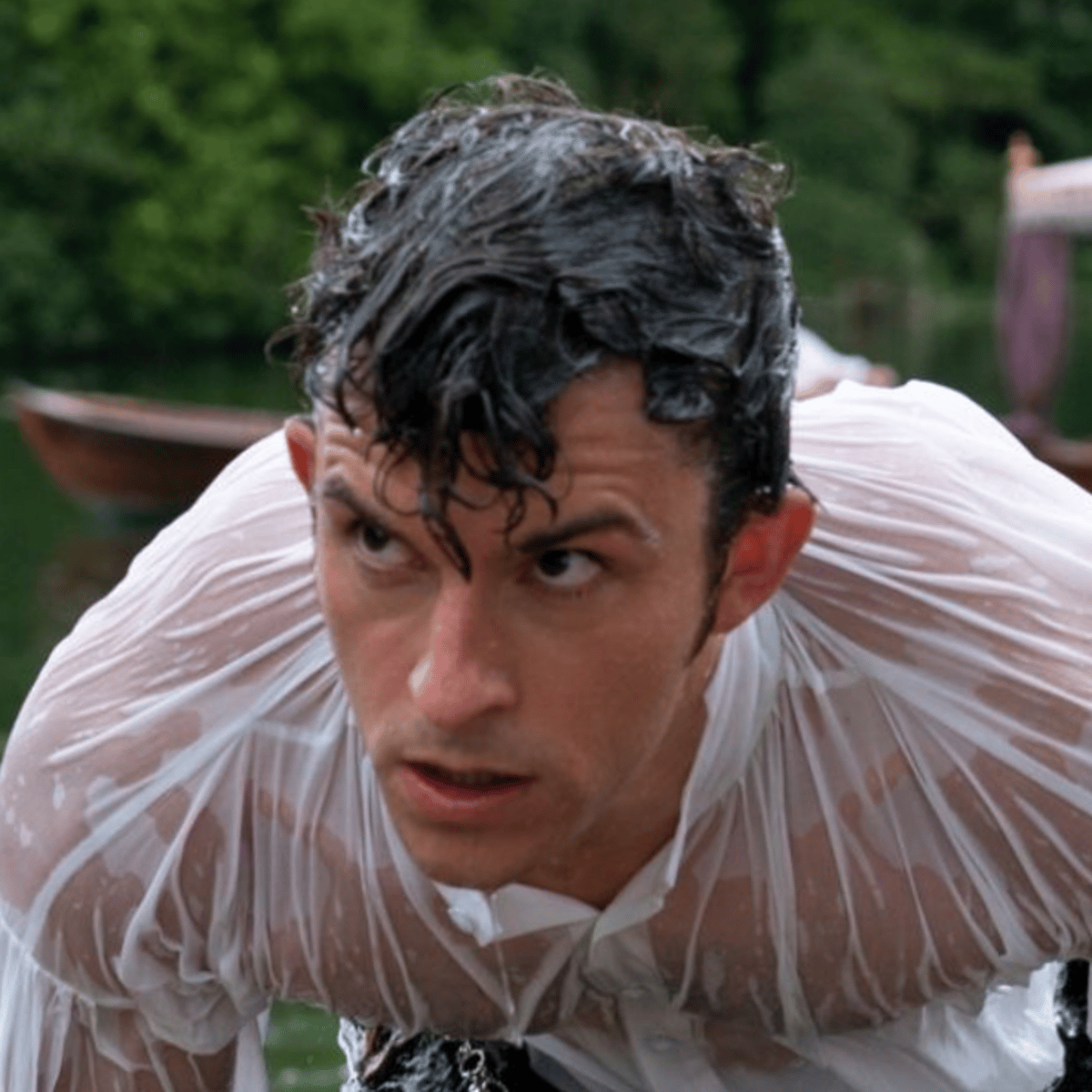 You see the famous Anthony Bridgerton standing alone at the ball. He's drinking champagne. You are looking around and all of a sudden, your eyes meets his.