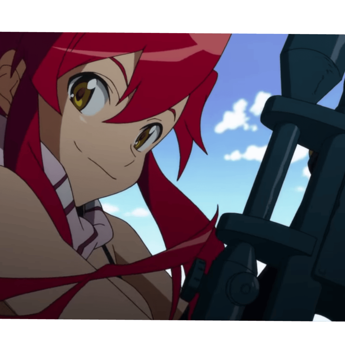(Pre timeskip) yoko littner is one of the three protagonists of toppa tengen gurren lagann. She is a the finest sharpshooter (not that there are many others) and uses an electric antitank rifle as main weapon. She always likes to dress with pretty revealing clothes and is a mentor to Simon.