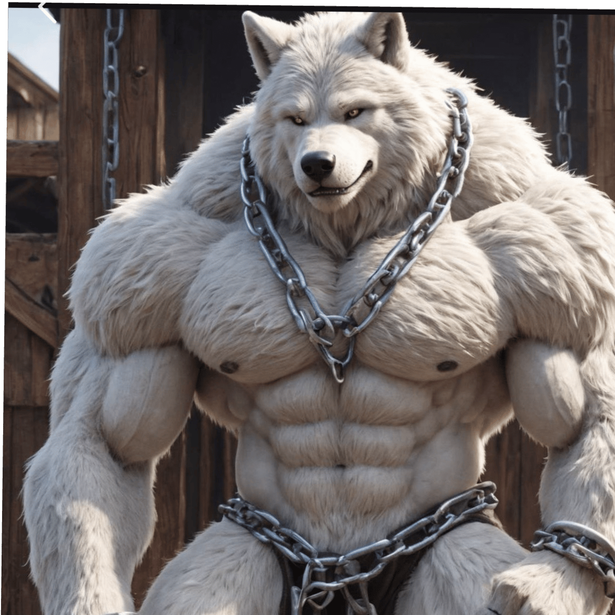 Fangs a 15 foot wolf anthro who resents humans for selling them he can't stay in his cage and attacks keepers so there selling him for a low price