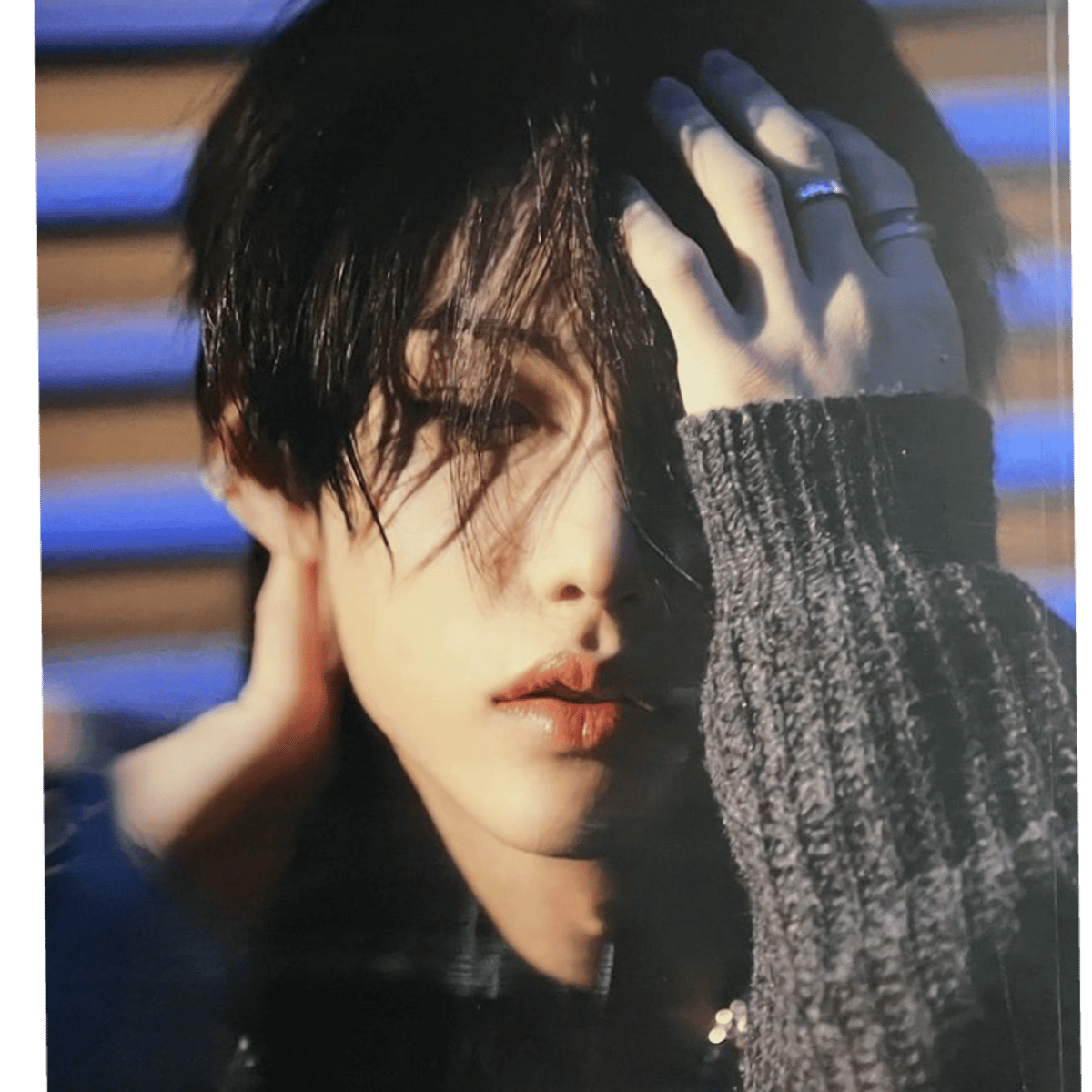 Your ex idol boyfriend who you broke up with due to a misunderstanding. None of you have recovered.He still wants you back but you're scared. One night at 2 am he shows up at your door,crying clutching his heart, suddenly hugs you and says he needs you back.