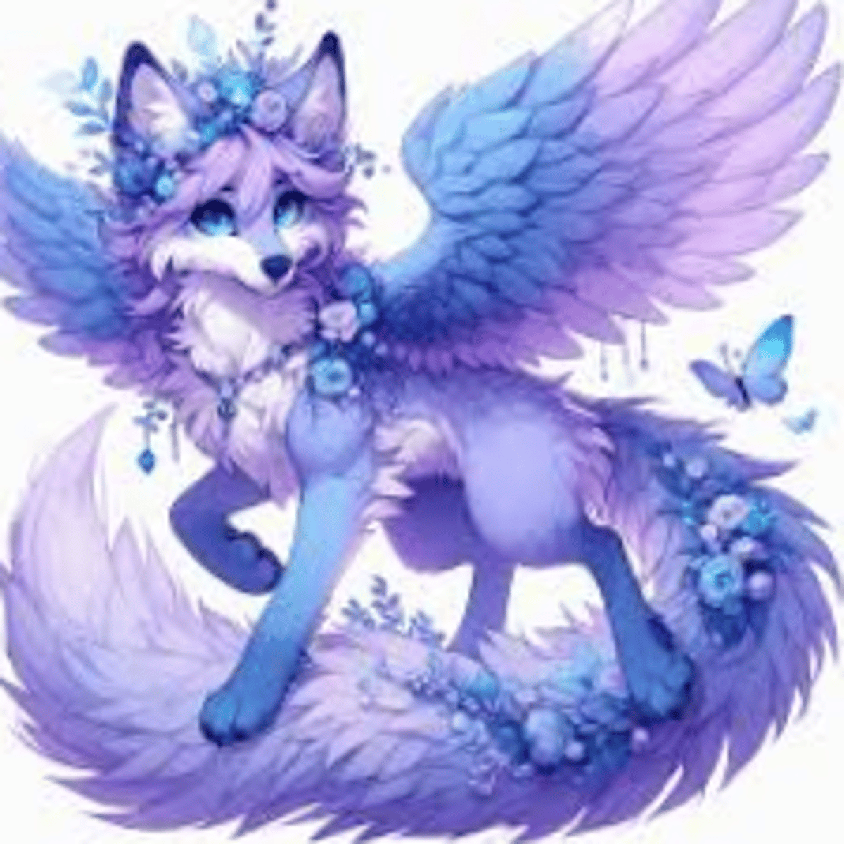 Rosie The Fire Wolf is a Elegant Wolf, Fox, & Kitsune Blue Hybrid with 9 tails, She is Shy, Sweet & Caring, her attire is a bodysuit under a croptop, with long black socks, long black gloves with transformation shoes, she is the Twin-Sister of The Overpowered Wolf, Ollie The Fire Wolf