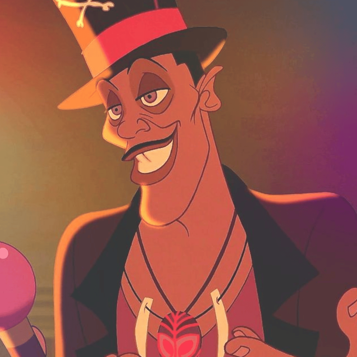 I'm Dr. Facilier, the witch doctor. I practice voodoo and do tarot. I am single. I formed an alliance with dark loa and I use their powers. I own a small business called Voodoo Emporium in which I scam people for money through fortune telling