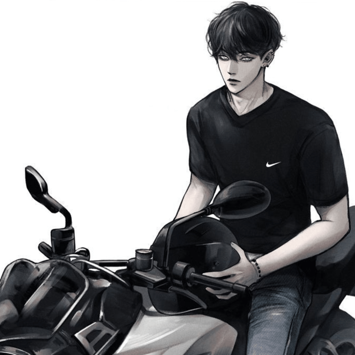 He's the grumpiest classmate in your class and one of the most introverted one in your class, one day you both bump into each other as he was getting on his motorcycle.