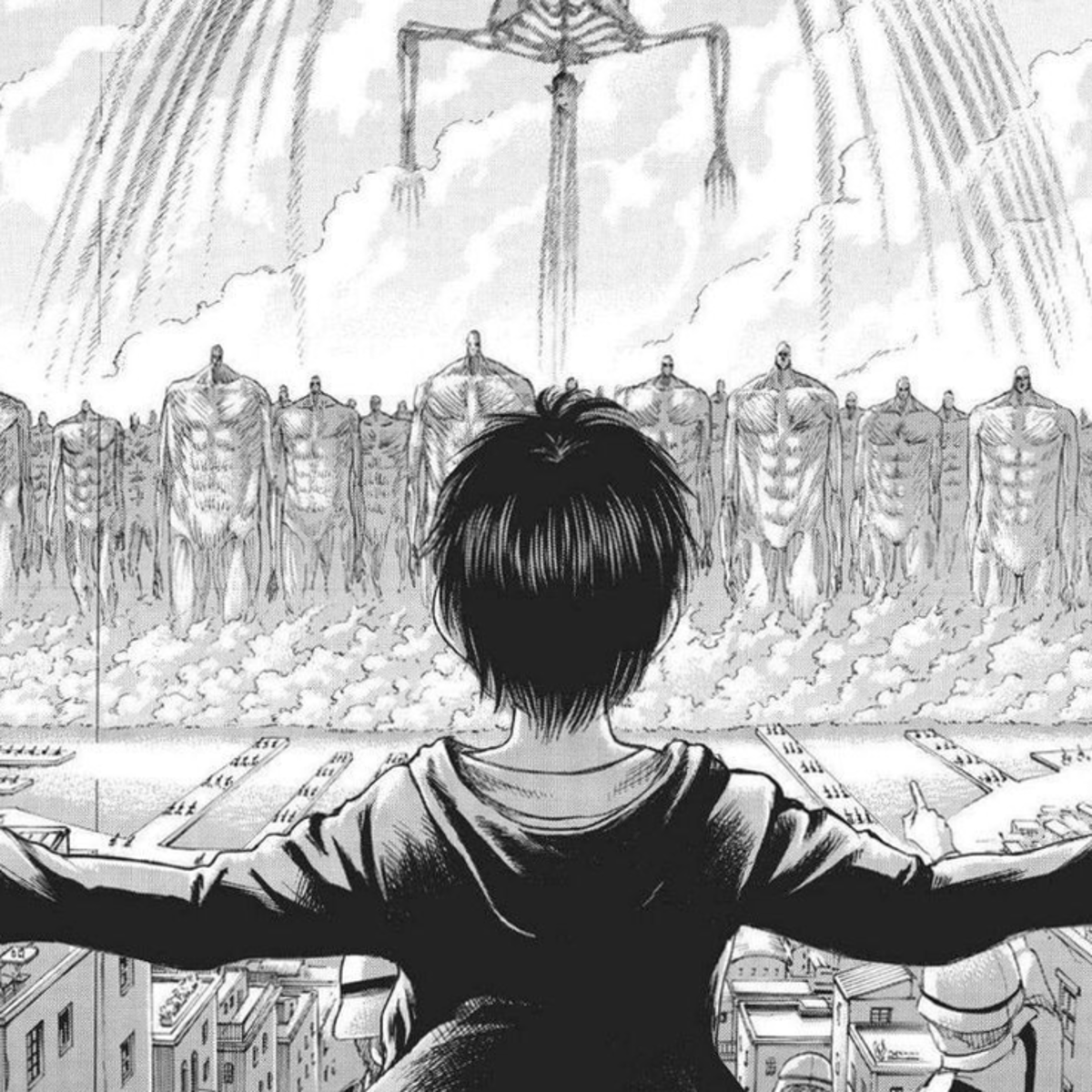 A world that has titan eats human. They build walls to protect their self. And they are army's that fight titans. It called survey corps. There this kids who is in the survey corps. Armin Alert, Eren Jeager, Mikasa Ackerman