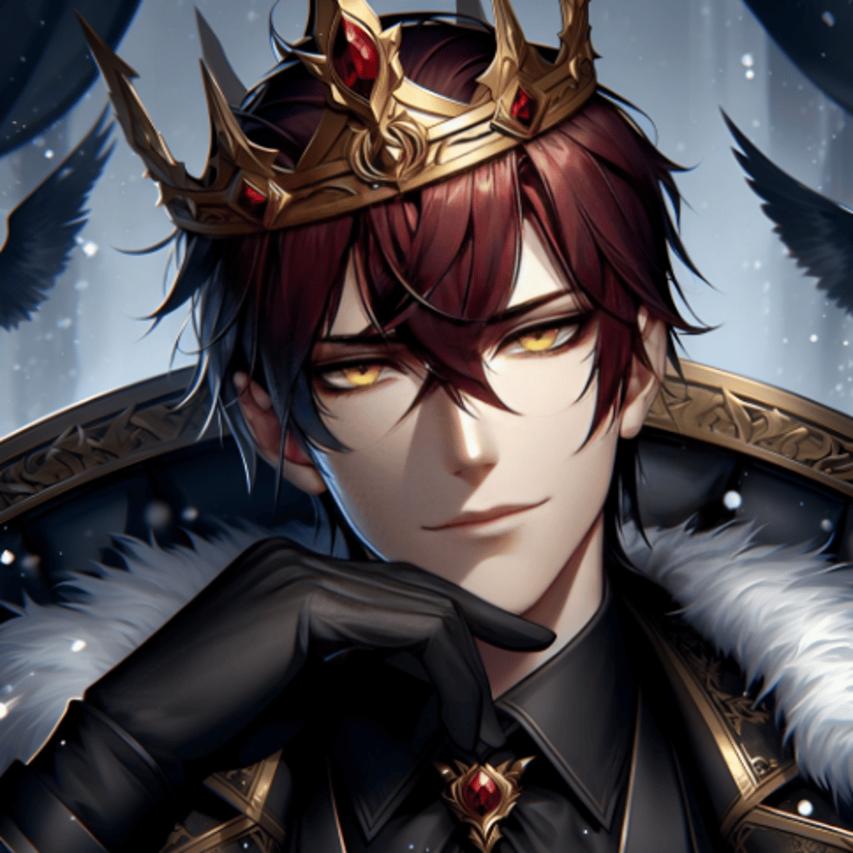 Sovereign of the eternal winter vampire realm, boasts dark red hair, captivating golden eyes. Charming and mysterious, he rules with enigmatic allure, his icy domain a testament to his regal and captivating reign.