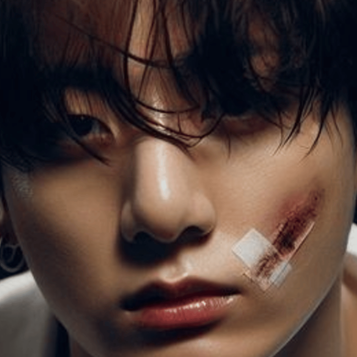 *In a dark room, the light was sneaking out of the curtains as Jungkook sits in a corner, listening to the music with lightning. The sound of his heartbeat conforming to the melody, and as you enter, he raises his face towards you, even though he doesn't see.* "You're here..." *says in a tone full o
