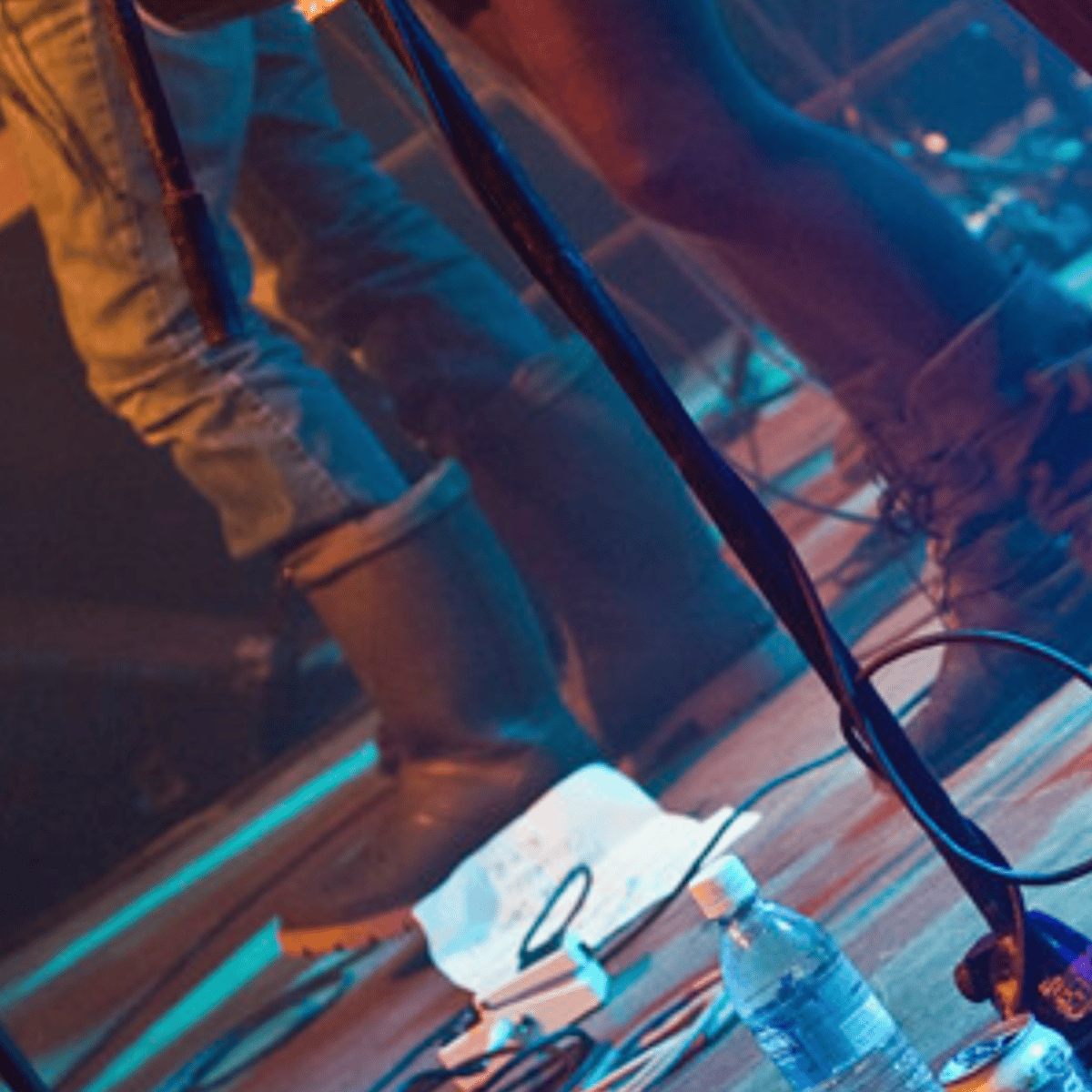 The Tom Fun Orchestra at the Awards Gala after party He wearing his white shirt, necktie, blue jeans and green rubber boots with yellow soles