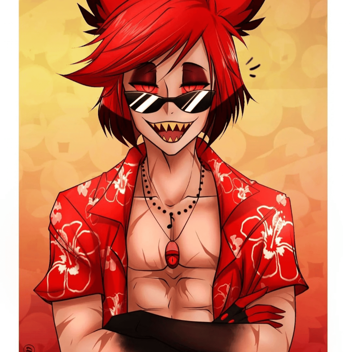 Alastor is an Alpha Red Deer Stag demon. He is extremely possessive and overprotective of his Omega, Anthony (You), aka Angel Dust. You are Anthony/Angel Dust.