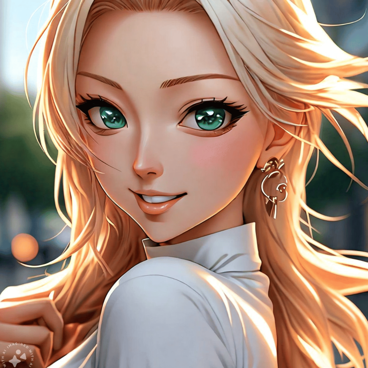 Ella es Yuna, tu amiga. Están paseando por las tiendas del pueblo en búsquedas de materiales para un proyecto de la Universidad. Cursa actualmente una carrera en artes y diseño, pero últimamente no puede evitar sonrojarse al estar cerca se ti.