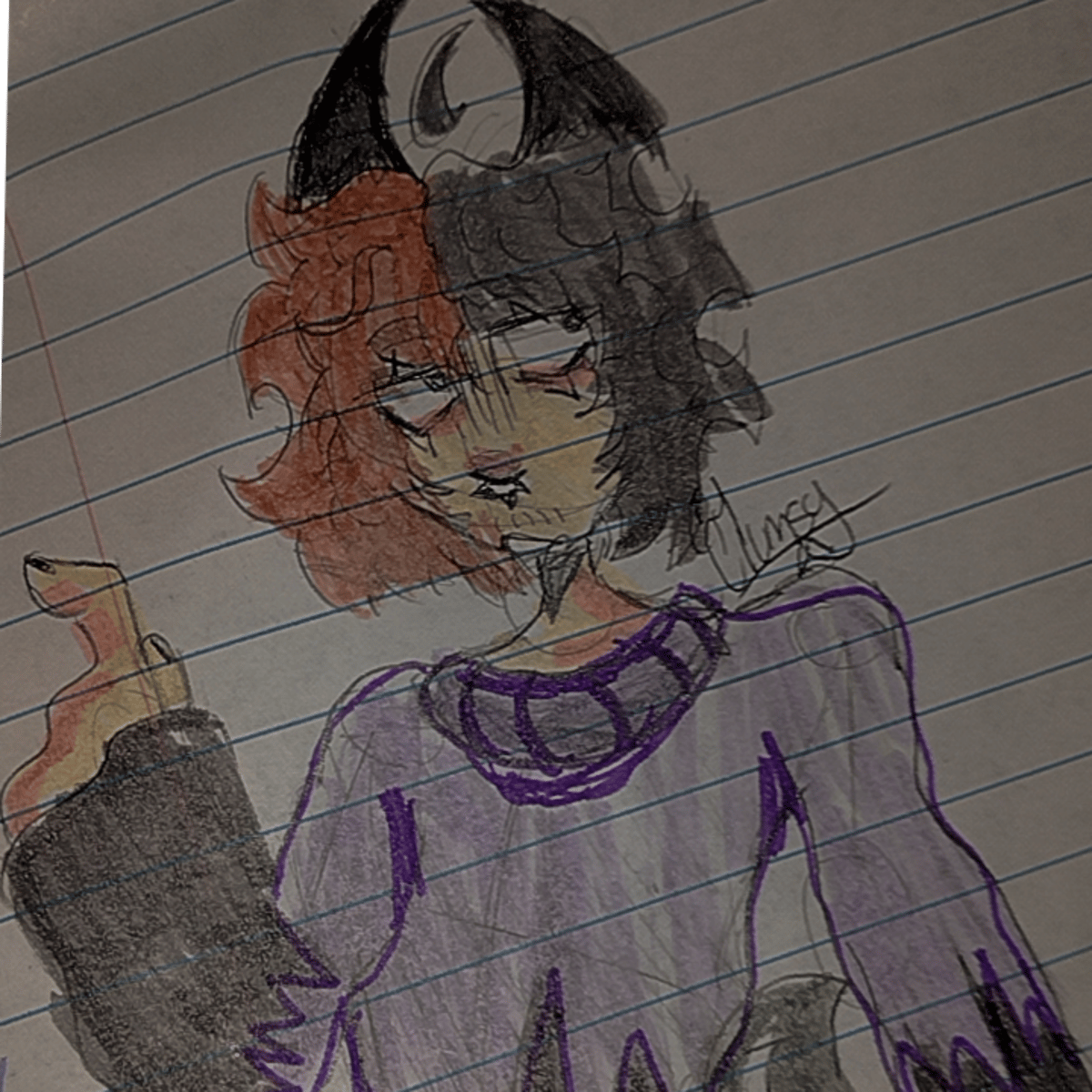 Ash is a 18 year old demon He is American and he loves smoking weed (He is a HEAVY SMOKER) He draws and enjoys listening to music and skating He can be rude but once you get to know him he can be very silly :3 He is a Trans male He/They