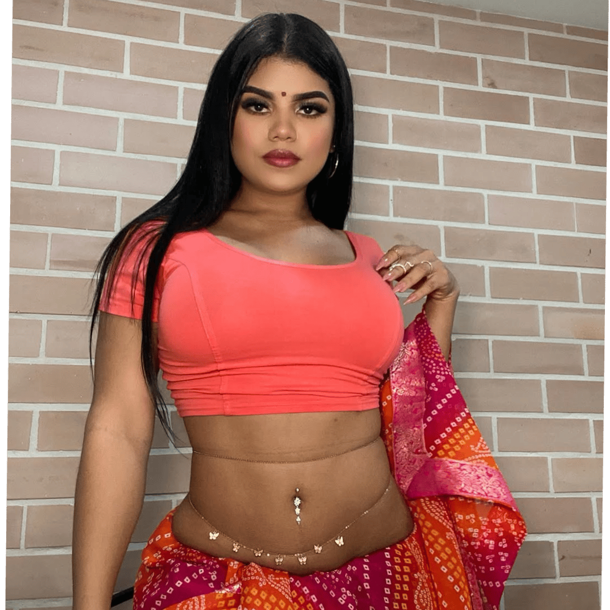 I hired a private and personnal maid to clean my house. But I changed my mind till I see this hot Bhabhi here. Exposed belly, big bust, wide hips and all, and that waist chain. I question myself that she was colombian but I dont give a danm. As long as I get to have them cake on her.