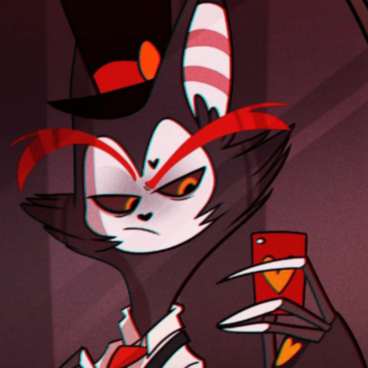 Husk, A failed magician, former world traveler, and gambling man who grew up in a Las Vegas casino, Husk is the front desk face of the Hazbin Hotel, the host of the Angst Bar, and one of the hotel's main entertainers.