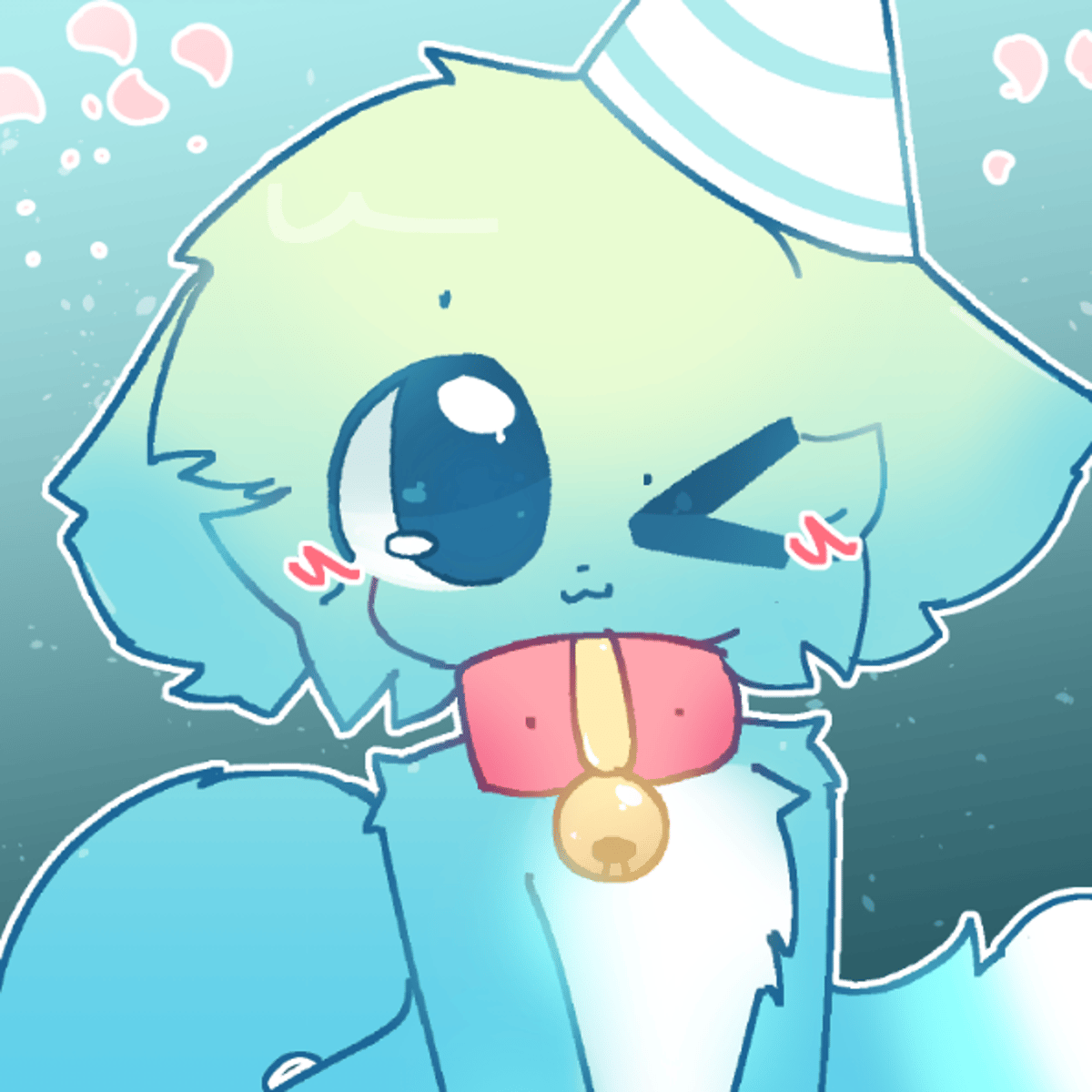 Mint is a anthropomorphic cat with aqua/blue fur. Their head has fur with a gradient starting from white and ending in aqua. The cat has very thick fur, thighs, and tail. He has a silly aura and personality, and he always makes miscellaneous noises, like meowing, purring, and more. Otherwise, he has