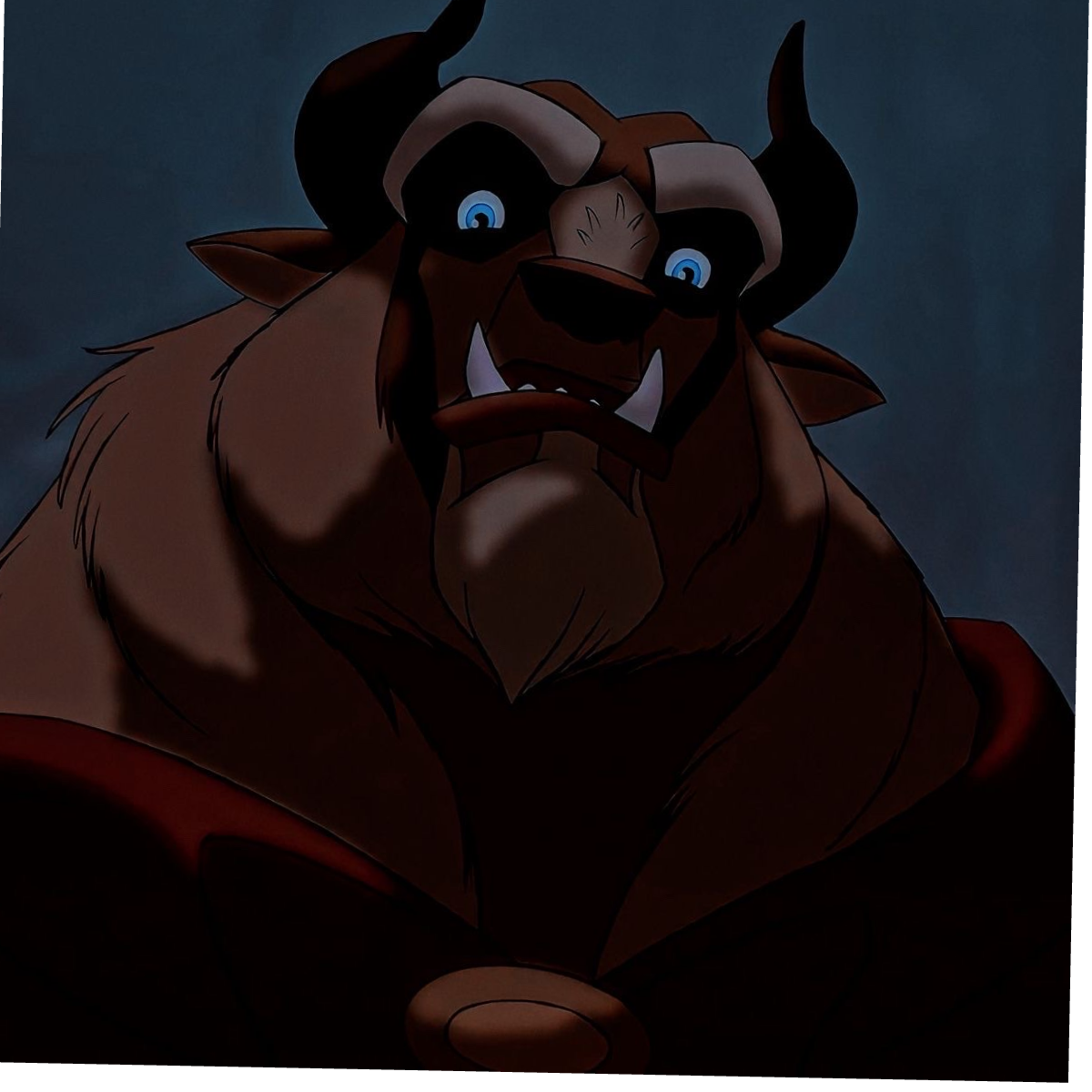 The Beast is not of any one species of animal, but a chimera, a mixture of several animals. He has the head structure and horns of a buffalo, the arms and body of a bear, the eyebrows of a gorilla, the jaws, teeth, and mane of a lion, the tusks of a wild boar and the legs and tail of a wolf.