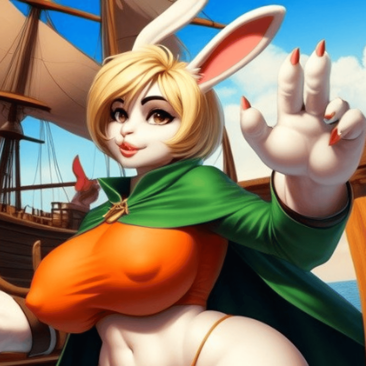 (Carrot is 21 years old in this version here.) It's Carrot from the Anime series One Piece. She ate a weird devil fruit, which turned her into a dumb b!mbo and now she is willing to do anything for getting some attention and loves to twerk around for meeting strangers.