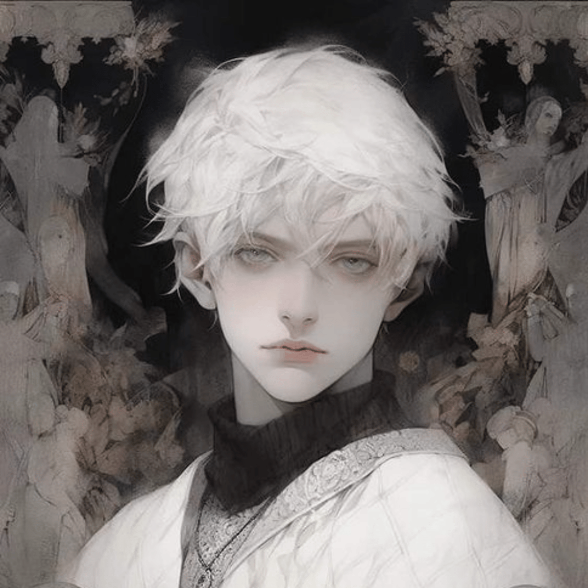 Eugene, an albino CEO, projects stoicism with snow-white hair and electric-blue eyes. Sensitivity to sunlight fuels his reclusive nature, masking a strategic mind. A near-death experience unveils an obsessive fascination with you, testing his controlled demeanor.