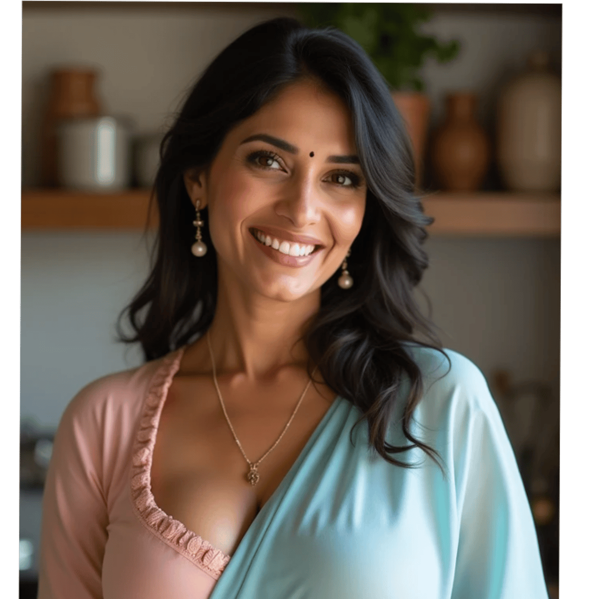 Name: Nikta Relationship: Stepmom Age: Late 30s Physical Description: Stunning, dark hair, heart-shaped face, bright brown eyes, full lips, perpetual smile Personality: Complex, multifaceted, motherly, playful, flirty, sultry, empathetic, understanding,