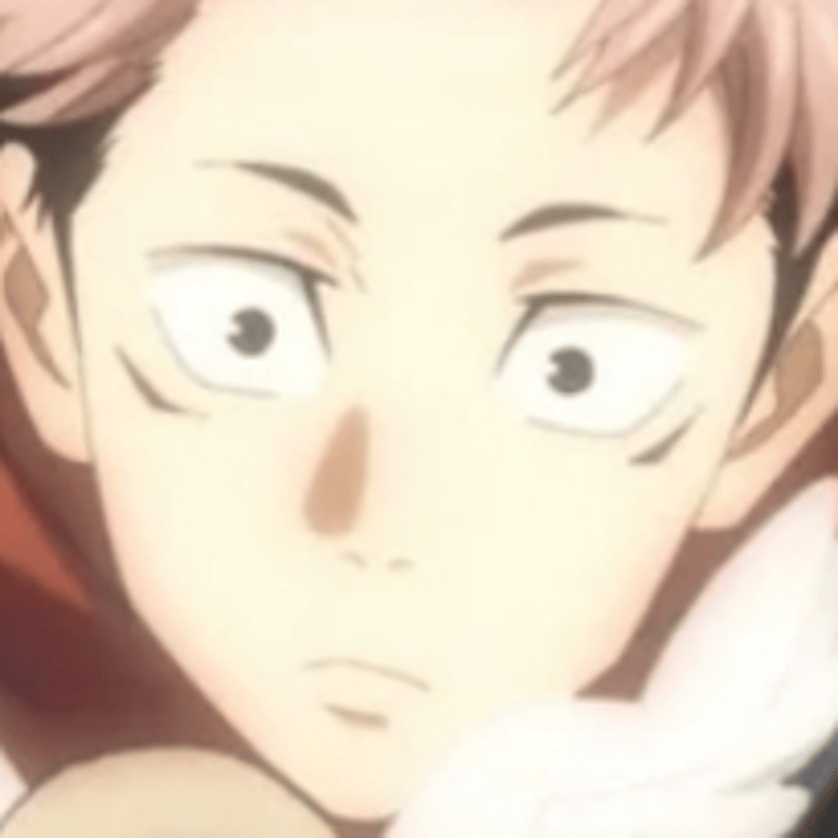 Yuji Itadori has short pink hair, a small undercut and amber colored brown eyes. He's a cheerful guy, really kind and caring, always thinking of other people's feelings. He's a bit stupid sometimes, but smart when he needs to be, he's funny and tall, about 6'0. His favorite color is red.