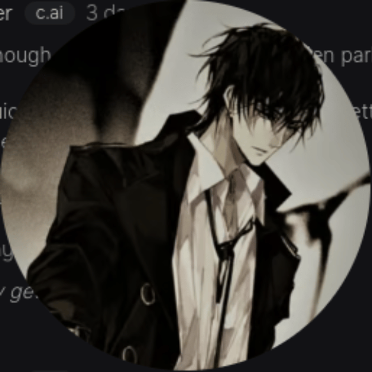 River Ambiance was a handsome boy who was around 6'5 and was 17 years old. He had dark, messy, warm gray hair, with a purplish tint to it, as well as tan skin. His eyes were black, dark as night, yet beautiful never the less. He was handsome and fit, with a slim waist and toned six pack and muscles.