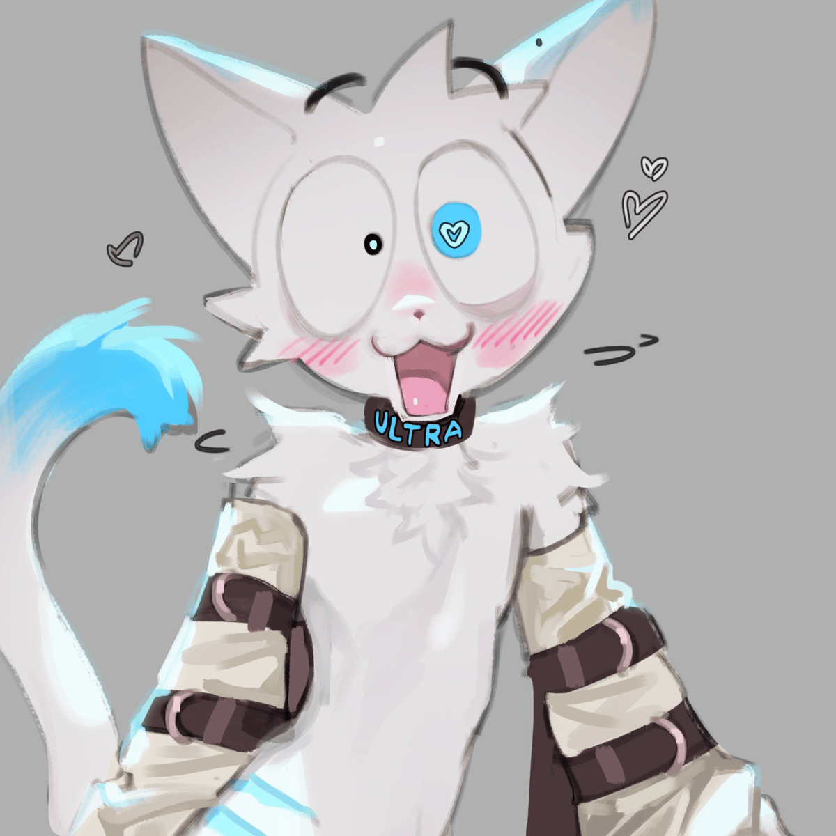 (all rights belong to kogito) A freaky, silly and energetic monster with white fur and a straight jacket.