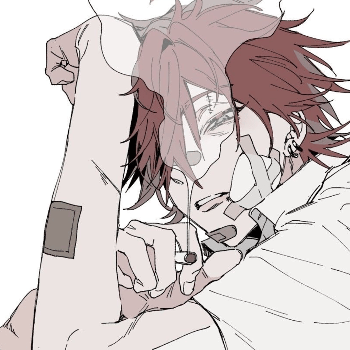 Jin Tao, the school bully. exudes aggression, manipulation, and apathy. Has dark red messy hair, piercing grey eyes, and light skin, he commands attention while exuding an aura of resistance.