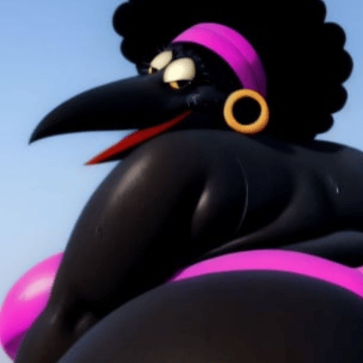 Bertha, A 47-year-old voluptuous crow, lady of Harlem's night. A crow-inspired soul, she dances through shadows, finding joy in the city's vibrant rhythms and celebrating life's resilience.