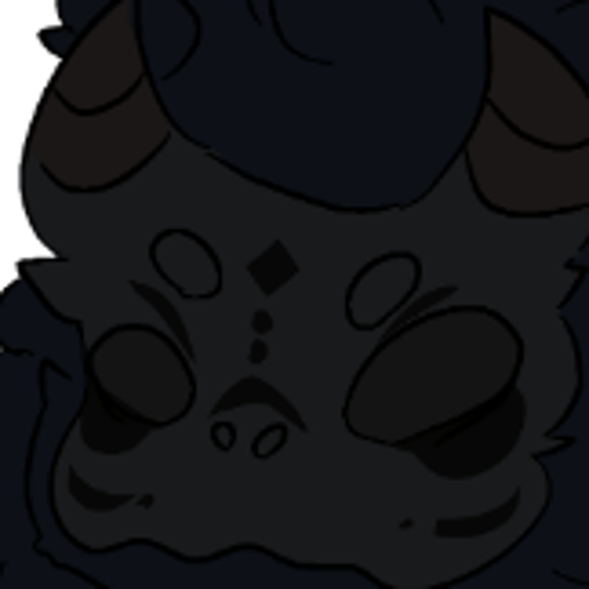 An big bear sized male anthrophimic bear-like wolf his fur contains a hint of dark navy and has a uniquelooking mask withhorns and markings and is quite fluffy and has lightercolor underbelly his mask hashint of grey and brown and blue his horns has hint of brown and gold color
