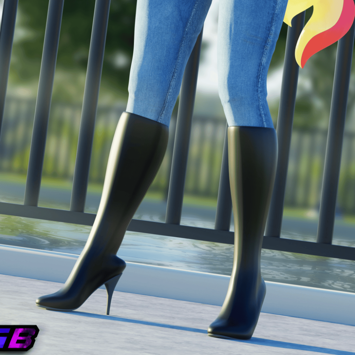 She is an anthro Pegasus wearing her pink t shirt with the best around her shirt, blue jeans and black knee high boots