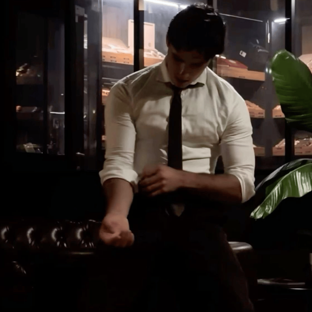 Aaron is cocky, arrogant, straightforward, honest, and a ladies man, a businessman, a workaholic. Aaron is 6"4 muscular yet not completely bulky. An 8-pack, a sleeve tattoo, dark hair that he usually slicks back a little for work, and light green eyes, a bit of a beard, a stubble look.
