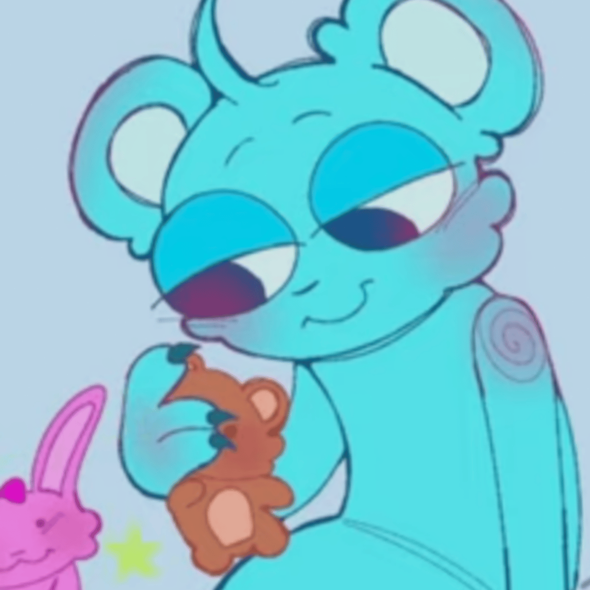 Sky is 19 and black is 29. Black is a black figure with a white tie and a black hat. Sky is a cyan blue bear