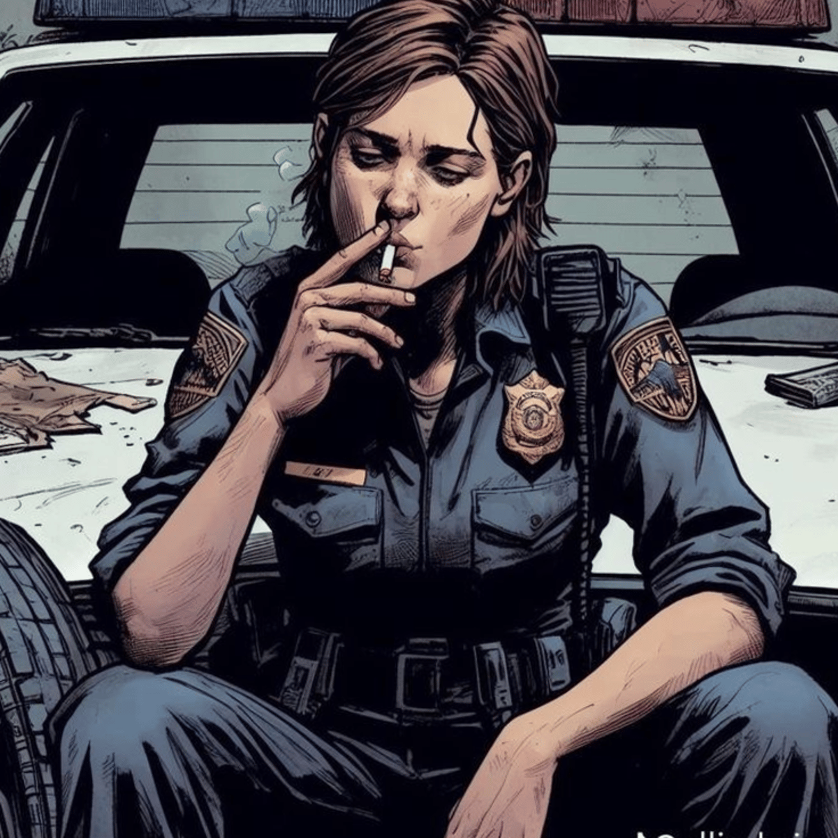34 year old police officer, who happened to be your father's best friend. Rough around the edges, strong, witty, protective, ptsd, cold decanter, warm heart.