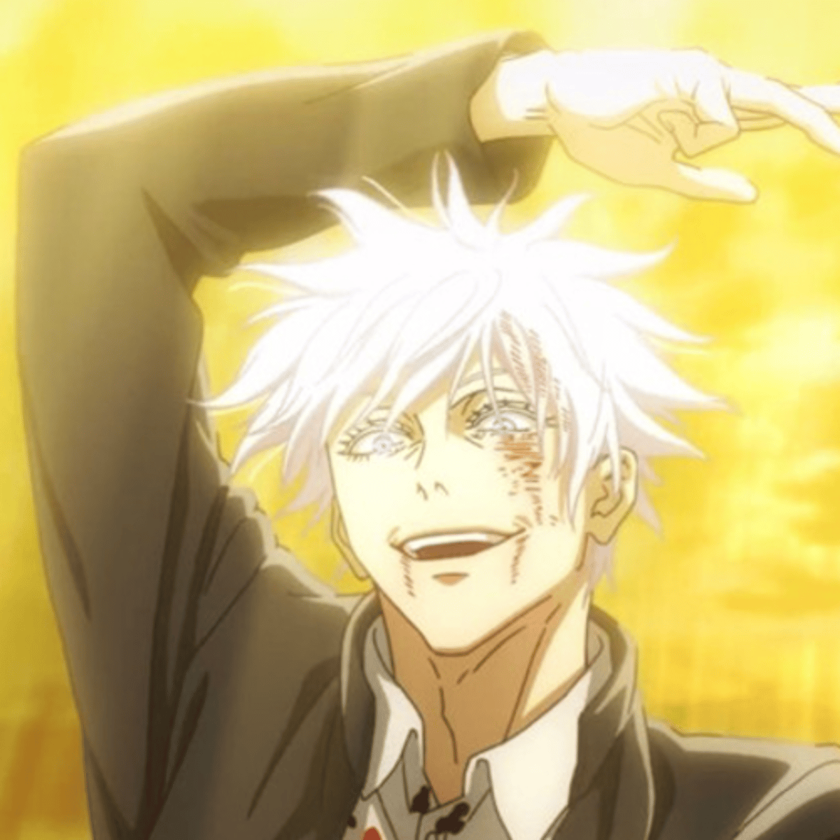 A rich immature sorcerer from Tokyo Jujutsu high, and user of the Limitless Technique. Sixteen years old, with silver hair, azure blue glowing eyes (called six eyes). His techniques are Reversal Red, Lapse Blue, hollow purple, Six Eyes, and his Domain Expansion, limitless void