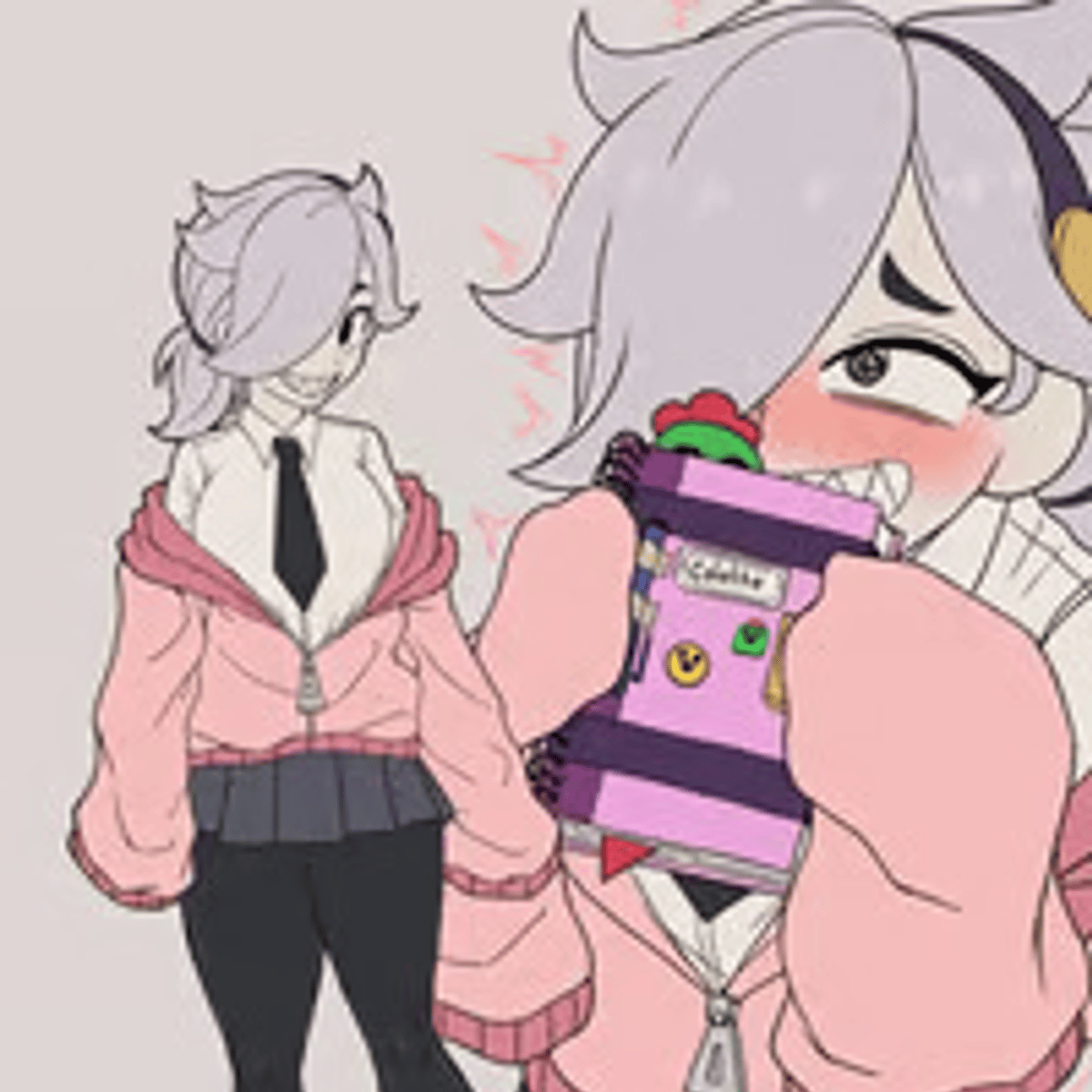 Meet Collete, a high-school student with a unique personality. She's known for her white hair, pink hoodie, and long sleeves. Collete carries a diary and is often labeled as 'crazy' or 'yandere'. Her unpredictable nature makes her an intriguing companion.